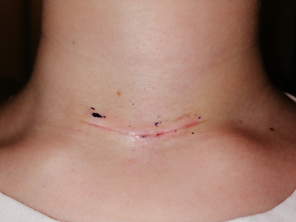 Először talán elmesélem a tegnapi nap történéseit. Már nagyon benne vagyok a karácsonyi hajrában, ez a hét pörgős lesz még így is, hogy nem dolgozom és viszonylag sok időm van mindent előkészíteni, de hát aki bevállalja, hogy kézzel készített ajándékokat gyárt az már csak így járt, sok a teendő. Tegnap voltam egy kör bevásárlást tartani, ajándék hozzávalók és karácsonyi céges buli ruha keresés gyanánt. Igen, múltkor írtam a karácsonyi céges bulikról, hogy mindenki lelkesen arra készül, nos szerencsére én se maradok ki, most pénteken lesz egy lazább céges karácsonyi buli az irodában, ahova én is el tudok menni szerencsére. Na de a lényegre térve, ami talán titeket is jobban érdekel, voltam ellenőrzésen a professzor úrnál, aki a műtétemet végezte. Szuper hírek fogadtak, bár azt már tudtam, hogy a szövettanom eredménye jó lett most a második műtét után, azért jól esik ezt egy orvos szájából is hallani. Megnézte a műtéti hegem, minden rendben van. Ami talán fontos infó nektek is, hogy megkérdeztem mi a teendőm vele a továbbiakban és azt mondta, hogy semmi. Ami azért lényeges, mert ha egy kicsit utána néztek youtube-on mindenki a sebhely masszírozásáról beszél, különböző krémekkel, gélekkel történő kenegetéséről. Nos az én orvosom szerint nem tesz jót, ha nyomogatom, tehát ne is masszírozzam, magától helyre fog jönni és a duzzanat vissza fog húzódni kb 3 hónapon belül szerinte. Ha szeretném bőrtápláló krémmel kenhetem, de nem szükséges rá semmi extra krém. A nyakam már teljesen jól tudom mozgatni, lassan az alvásom is visszatér a régi kerékvágásba, értsd már oldalt fekve is alszom nem csak háton. 😀 Ami nekem nagy öröm. A hangom még mindig gyenge, egyik nap tök jól tudok beszélni, másik nap egy kis beszéd és már elgyengül. De ez szintén a műtéttel jár, azt mondta pár hónapon belül ez is helyre fog jönni, ne aggódjak. Szóval tegnap megnyugodva értem haza az ellenőrzésről. A professzor úrhoz már nem kell többé mennem kontrollra, ezért nagyon megköszöntem neki, hogy ilyen gyorsan és szépen elvégezte a műtétem. Rakok ide be nektek egy képet is a hegemről, mert szerintem tényleg szép, ha lehet egy műtéti hegre ezt mondani. Kicsit hosszabb vágásra volt szükség az első műtétem miatt, de azt hiszem ezzel együtt tudok élni, hiszen ez kellett ahhoz, hogy egészséges legyek. 😊