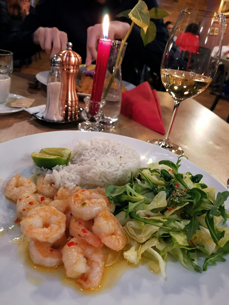 Ennyi lett a volna a kis life update-m, inkább mesélek egy kicsit nektek a hétvégémről, úgy néz ki mostanában a day in the life-ok már csak ilyenek lesznek, a hétvégékről szólnak. Ahogy már említettem pénteken elmentünk vacsorázni, ez volt a mi Valentin-napi programunk. Bár megbeszéltük, hogy nem veszünk semmit egymásnak, Tamás mégis meglepett egy kis szív alakú, rózsával teli rózsaszín dobozzal. Kicsit mérges voltam rá, hiszen megbeszéltük, hogy nem veszünk semmit egymásnak és ilyenkor olyan rossz érzés, hogy ő vett nekem valamit én meg nem vettem neki semmit, de azért örültem ennek a kis meglepetésnek. A vacsora pedig nagyon jól telt, chilis-fokhagymás garnélát ettem basmati rizzsel és salátával. A desszert pedig egy csoki szuflé volt és egy pavlova, mindkettőt befeleztük. Jól jött most nekünk ez a Valentin-nap, hiszen már régóta nem mozdultunk ki sehova, étteremben pedig már nagyon régen voltunk.