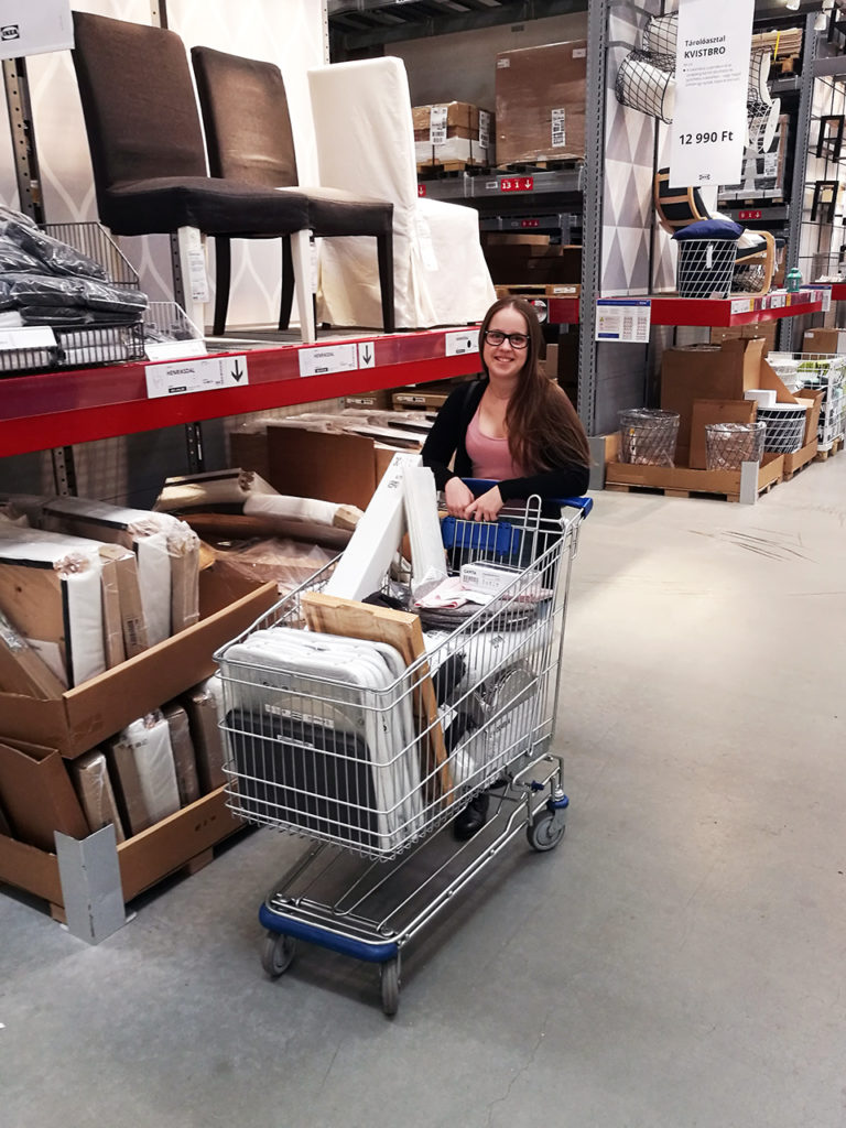 A szombati nap viszonylag korán indult.. Fél 10 körül már az Ikeában voltunk és kezdődhetett a vásárlás. Egy nagy listával érkeztünk meg, de azért az első utunk a hot dog-hoz vezetett Tamás kívánságára. Én már útközben megettem a kis reggelimet, az övé pedig a hot dog lett. Én egy felet ettem, mert nem bírtam ki, hogy ne egyek bele az övébe, mellé pedig megittunk egy kávét és indulhatott is a vásárlás. Megérte viszonylag korán menni, mert még nem voltak sokan és nyugodtan tudtunk nézelődni az elején, persze ez az idő múlásával változott és mire a végére értünk már sokan tolongtak az Ikeában. Így történt meg az is, hogy végül nem ebédeltünk semmit, mert olyan sokan voltak az étkezőnél, hogy nem volt kedvünk kivárni a sort és inkább gyorsan megkerestük még, amit szerettünk volna. Megpakoltunk egy bevásárlókocsit mindenféle dologgal és a pénztár felé vettük az irányt. Sajnos Markust most ott hagytuk, mert nem sikerült meghoznunk a döntést szék ügyben, pedig már nagyon kellene vennünk egy új széket, hogy kényelmesen tudjunk itthonról is dolgozni. Kb 2 óra lett, mire kiértünk Ikeából, pedig most nem is nézelődtünk sokat csak a lista alapján vásároltunk be. A hétvége további részét Tamás szüleinél töltöttük.
